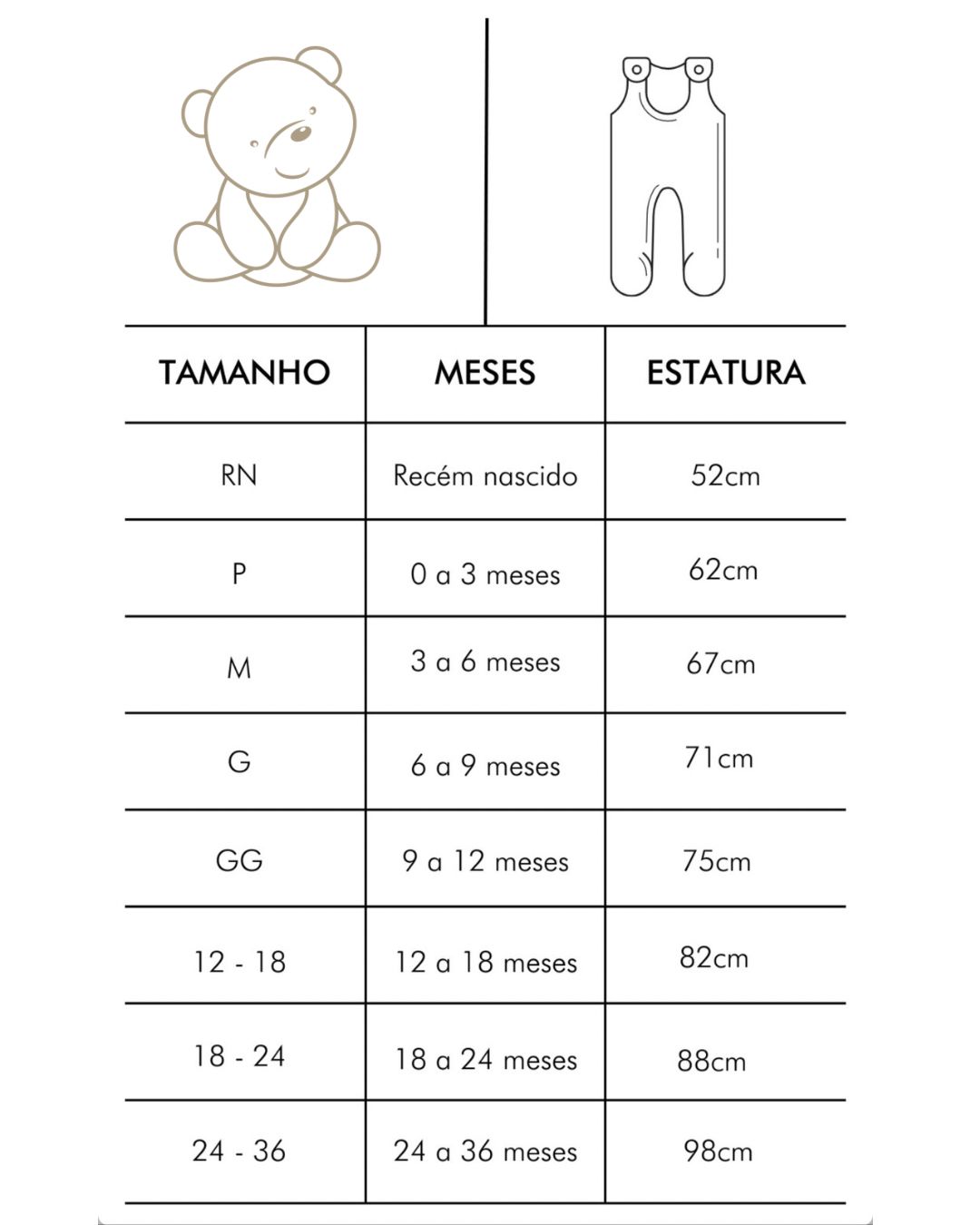 A jardineira possui alças com botões e modelagem confortável, enquanto a camisa tem colarinho clássico e fechamento frontal, oferecendo praticidade e um toque refinado ao look dos pequenos.